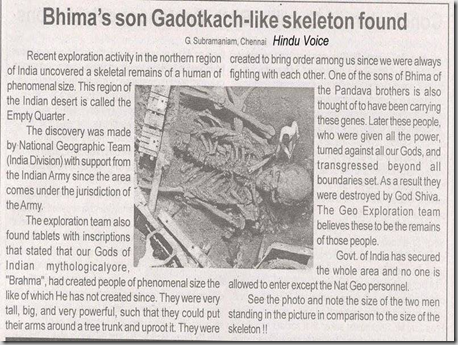 NGC India has discovered a Demonic human skeleton. It is supposed to be the one of the Mythological characters "Ghatotkacha" from the Hindu epic Mahabharat. Now this leads to questioning of the Myths of the mythologies. Are they really a myth or we just want them to be a myth.