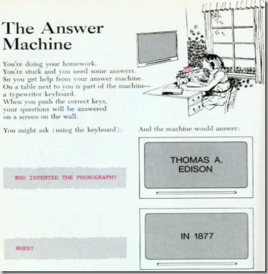 That’s the case with a piece about the “answer machine” of the future, which appeared in the book Childcraft Volume 6: How Things Change, published by Field Enterprises Educational Corporation in 1964. (Thanks to Paleo-Future for bringing this to my attention.)